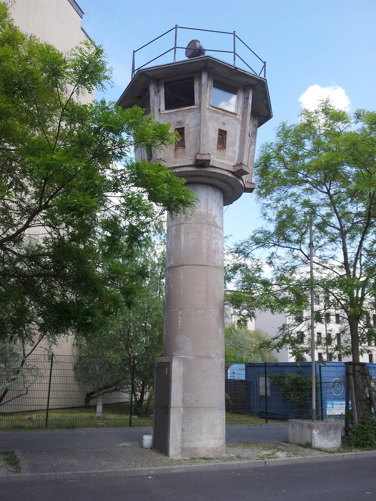 RundblickbeobachtungsturmDown a side street off the busy commercial hub of Potsdamer Platz is this relic of the Berlin Wall and the Cold War,an East German watchtower. The “panorama observation tower” originally stood between the Brandenburg Gate and Leipziger Platz and served as a base for border guards. Construction of these crenelated type BT 6 watchtowers began in 1966 and there were at one time 200 of them.