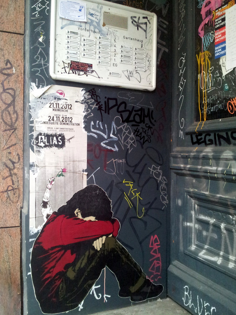 Street art, Yard 5, Friedrichshain. I caught this only briefly between the M13 and M10 trams and the rain about to set in and my camera battery dying. The project looks interesting enough for me to make a trip just to look through the yard, painted over the Easter long weekend.